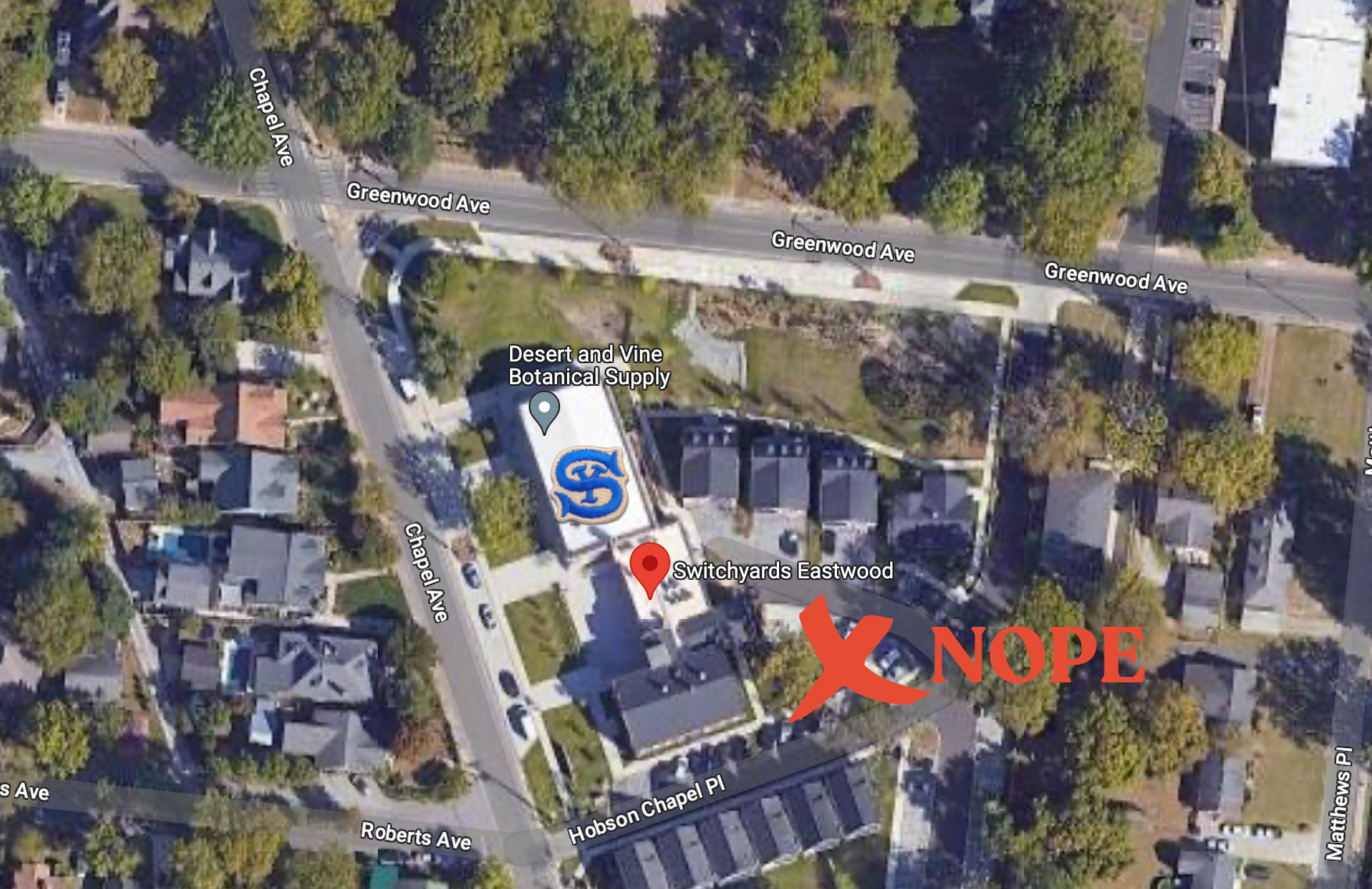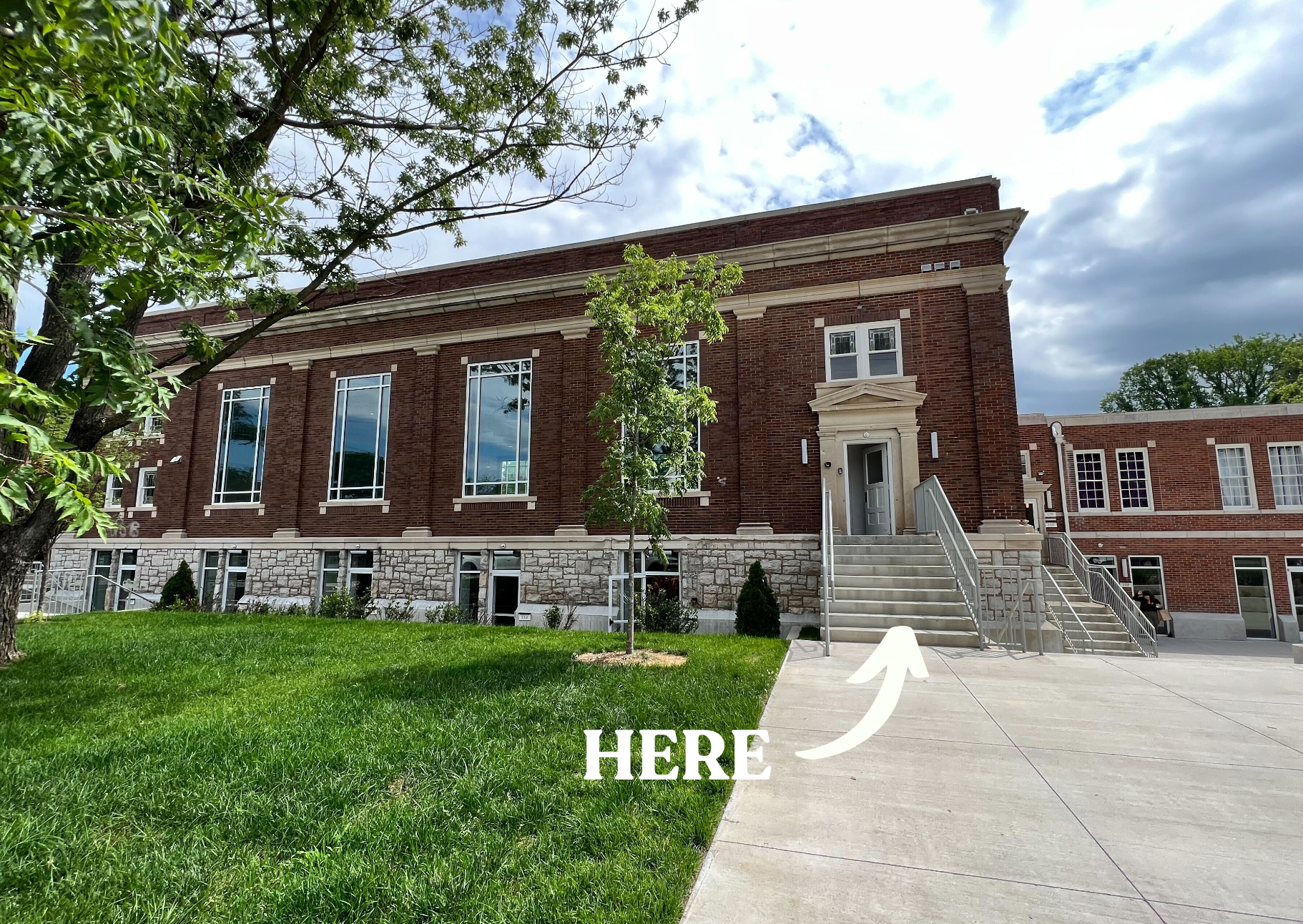 Members should enter through the side door on Chapel Ave, not through the entrance with the large columns. Look for the Switchyards sign above the door.